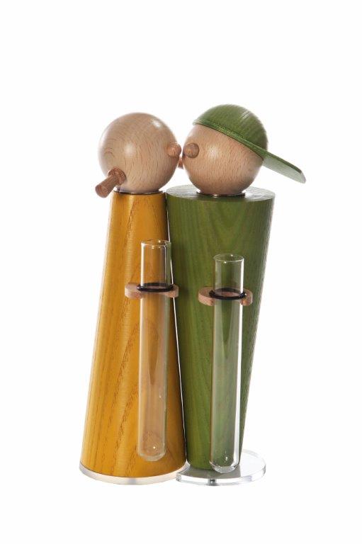 Im Glasröhrchen lassen sich Blumen oder Süßigkeiten, ein Geldpräsent aber auch ein guter Tropfen unterbringen. Seien Sie kreativ. Wie die Eltern hat auch der Nachwuchs einen mittels Magnet verstellbaren Kopf, um verschiedene Stimmungen auszudrücken. Wir sind aber der Meinung: Am besten immer Kopf hoch.