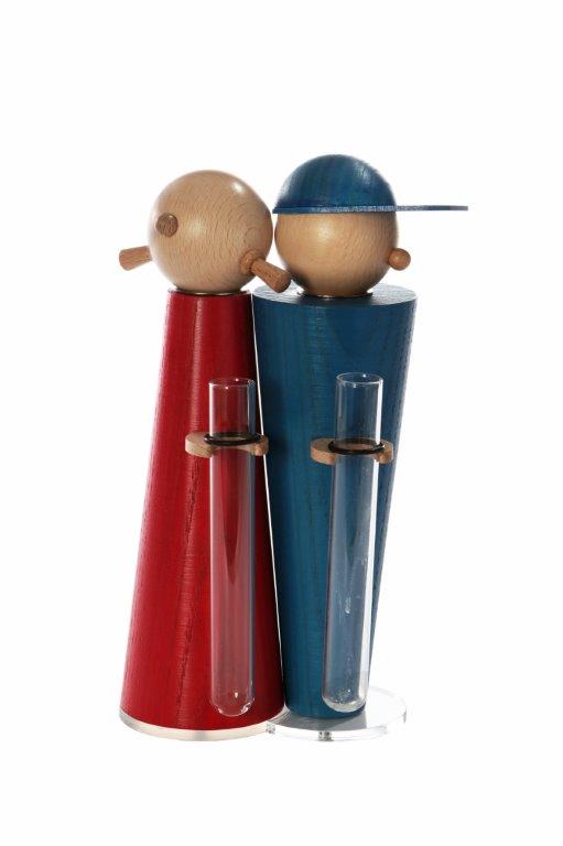 Im Glasröhrchen lassen sich Blumen oder Süßigkeiten, ein Geldpräsent aber auch ein guter Tropfen unterbringen. Seien Sie kreativ. Wie die Eltern hat auch der Nachwuchs einen mittels Magnet verstellbaren Kopf, um verschiedene Stimmungen auszudrücken. Wir sind aber der Meinung: Am besten immer Kopf hoch.