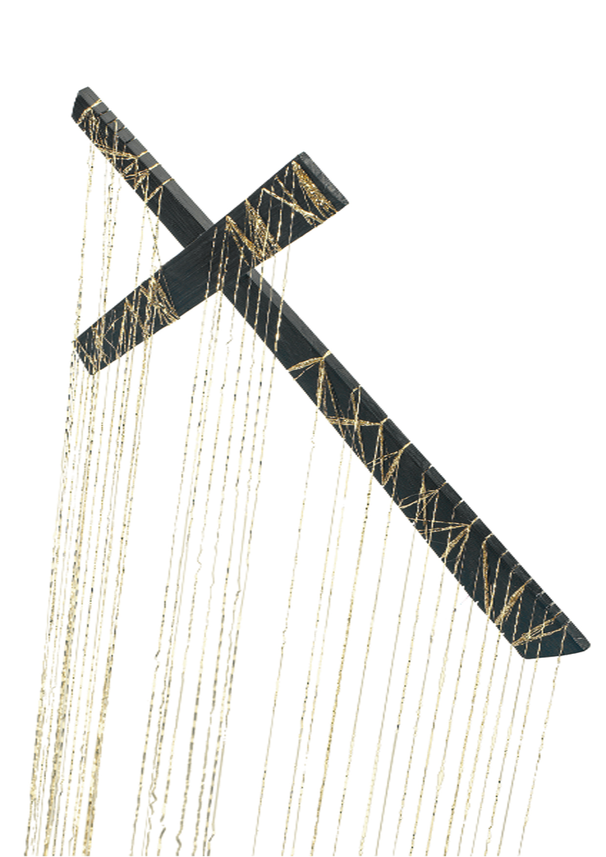 Moses steht mit den Gesetzestafeln am Berge Sinai. An der Mariengruppe ziehen in stetiger Bewegung das Volk und die Hirten mit ihren Schafherden vorüber. Unter die Hirten haben sich die drei heiligen Könige mit ihren Gaben gemischt. Andächtig stehen Maria und Josef vor dem Kind in der Krippe. Der Stern richtet seinen Schein auf das Neugeborene. Doch der Schein strahlt zurück und weist auf das Kreuz - die Vollendung des Lebens Christi. Die Bergpredigt - Jesus breitet seine Arme weit über das Volk - die Welt - aus. Posaunen blasende Engel zwischen den Flammen der Kerzen stehen für Verkündung und Offenbarung.