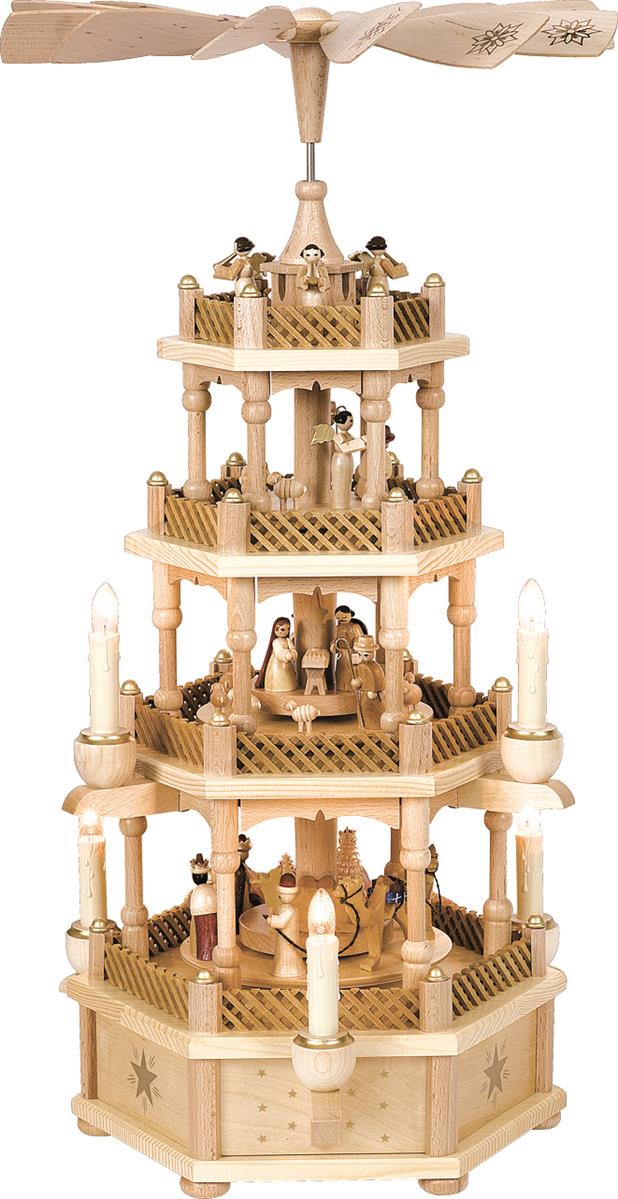 Pyramide Christi Geburt 3-st., natur, el. bel. u. betr.