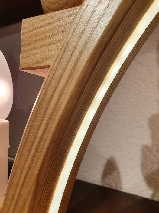 Schwibbogen aus Holz mit elektrischer Beleuchtung und Innenbeleuchtung - über einen Doppelschalter beliebig schaltbar.