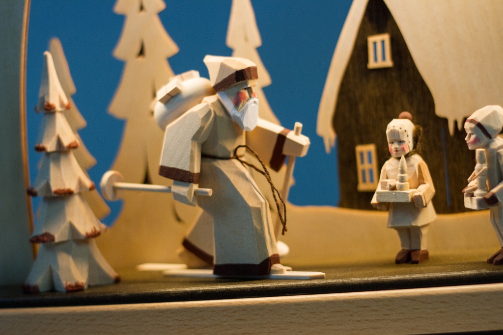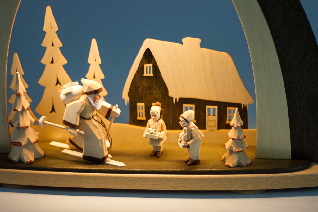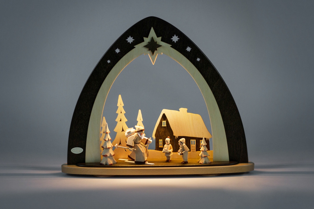 Die LED Beleuchtung befindet sich in dem Bogen, so dass die Figuren von oben angestrahlt werden.